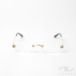 De klassieke Panthère-uitvoering is geïnspireerd op de lederwarencollectie van het modehuis en kenmerkt zich door de driedimensionale panterkop met emaille details op het scharnier. De moderne geometrische vorm in een randloos ontwerp zorgt voor een modieuze en iconische look. De panterkop is verrijkt met zwarte emaille details en een kostbare afwerking in goud of platina. De pootjes zijn gemaakt van acetaat voor optimaal draagcomfort.