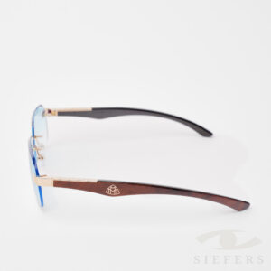 Dit montuur is volledig gemaakt van titanium, het montuur is vervolgens verguld. Prachtige details en dit montuur is zeer licht gewicht. Maybach Eyewear Ultimate 1 goud.