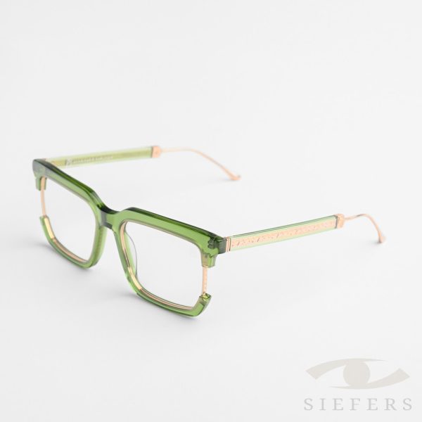 ACETAAT FRAME, DETAILS GEMAAKT VAN TITANIUM GEPLAATST IN ECHT 24K GOUD. OPTISCHE DEMOLENZEN.