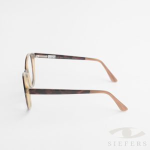 Deze bril is gemaakt van Hoorn en krijgt zijn schilpad effect/look door een laagje dun Cashmere tussen de hoorn lagen.